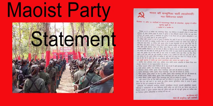 డిసంబర్ 12వ తేదీన చత్తీస్ గడ్ రాష్ట్రం నారాయణపూర్ జిల్లా మాడ్ ప్రాంతంలో ఎన్ కౌంటర్ లో ఏడుగురు మావోయిస్టులు మరణించినట్టు పోలీసులు చెప్తున్నది కట్టుకథ అని మావోయిస్టు పార్టీ ప్రకటించింది. అనారోగ్యంతో ఉన్న కర్తీక్ దాదా ఎలియాస్ మోహన్ రావును, ఆయనకు సహాయకురాలిగా ఉన్న మరో కామ్రేడ్ రమీల ను పట్టుకొని చిత్రహింసలు పెట్టి కాల్చి చంపారని, అదేవిధంగా గ్రామస్తులపై కాల్పులు జరపగా ఐదుగురు గ్రామస్తులు చనిపోయారని మావోయిస్టు పార్టీ మాడ్ డివిజన్ కమిటీ ఓ ప్రకటన లో తెలిపింది.