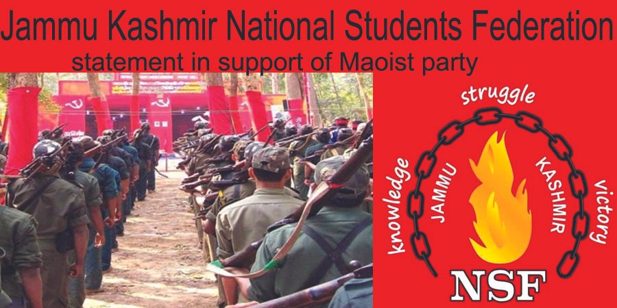 The Jammu Kashmir National Students Federation (Maoist) stands in firm and unconditional solidarity with the Communist Party of India (Maoist) and its unwavering adherence to the revolutionary line of protracted People’s War. At a time when global reaction intensifies and Indian expansionist fascism deepens its war on the oppressed masses — especially Muslims, Adivasis, Dalits, peasants, women, and workers — the CPI (Maoist) remains a beacon of Marxist-Leninist-Maoist resistance.