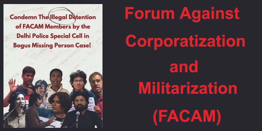 Forum Against Corporatization and Militarization (FACAM), a coalition of civil society advocates, journalists, students, intellectuals are issuing an urgent statement to condemn the recent arbitrary detention, alleged torture, and judicial harassment of at least nine activists in Delhi who were either members of FACAM or associated with our activism demanding ceasefire between the proscribed CPI (Maoist) and the Indian government’s paramilitary forces posted in Central India, particularly Bastar region of Chhattisgarh. They were also associated with our prolonged campaign to end the brutal military offensive Operation Kagaar and the Surajkund Scheme of the Indian state. These events represent a severe escalation in the repression of democratic dissent and fundamental rights in India.