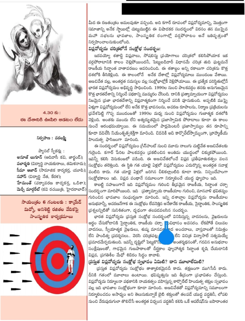 ఇరవయ్యో శతాబ్ది విప్లవాలు, సోషలిస్టు ప్రయోగాలు చరిత్రలో కలిసిపోయాక ఇక వర్గపోరాటానికి కాలం చెల్లిపోయిందనీ, పెట్టుబడిదారీ విధానమే చరిత్ర తుది ఘట్టమనే రాజకీయ సిద్ధాంత వాతావరణం ఆవరించింది. ఈ శతాబ్దం అన్ని రకాలుగా చరిత్రను కొత్త దశలోకి తీసికెళ్లింది. ఈ కాలంలోనే అనేక దేశాల్లో విప్లవోద్యమాలు ముందంజ వేశాయి. అణచివేత వల్ల, అంతర్గత సమస్యల వల్ల సంక్షోభాల్లోకీ వెళ్లిపోయాయి. ఈ ప్రత్యేక పరిస్థితుల్లోనే భారత విప్లవోద్యమం అభివృద్ధి సాధించింది. 1990ల నుంచి పాలకవర్గం తనకు అనుగుణమైన కొత్త భారతదేశాన్ని నిర్మించే పథకాన్ని ముమ్మరం చేసింది. దానికి ప్రత్యామ్నాయంగా విప్లవోద్యమం నిజమైన ప్రజా భారతదేశాన్ని విప్లవాత్మకంగా నిర్మించే పనికి పూనుకుంది. అప్పటికి ముప్పై ఏళ్లుగా విప్లవోద్యమంలో లేని అనేక కొత్త భావనలను, ఆచరణ రూపాలను, నిర్మాణ పక్రియలను ప్రవేశపెట్టి గొప్ప ముందంజతో 1990ల మధ్య నుంచి విప్లవోద్యమం గుణాత్మక దశలోకి వెళ్లింది. అంతకు ముందు లేని అత్యద్భుతమైన ప్రజాస్వామిక పోరాటాలు కూడా ఈ కాలం నుంచే ఆరంభమయ్యాయి. ఈ సమయంలో పార్లమెంటరీ ప్రజాస్వామ్యం తన రూపాన్ని కూడా వదిలేసి నియంతృత్వశక్తిగా మారింది. చివరికి అది కార్పొరేట్స్వాంమ్యంగా, బ్రాహ్మణీయ హిందుత్వ ఫాసిజంగా మారింది.