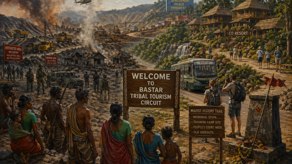 కానీ… ఇక్కడ పర్యాటకమంటే ఆహ్లాదం కాదు, దోపిడీకి అస్త్రం. యుద్ధ క్షేత్రాలను విహార యాత్రాకేంద్రాలుగా మార్చడం వెనుక ఉన్న అసలు ఉద్దేశ్యం.. ఆ నేల మీద భూమిపుత్రుల హక్కులను కాలరాయడం. బస్తర్ లాంటి ప్రాంతాల్లో పర్యాటక రిసార్టులు వెలుస్తున్నాయంటే, అక్కడ ప్రజల ప్రతిఘటనను అణచివేసి, పారామిలటరీ బలగాల పహారాలో మైనింగ్ మాఫియాకు మార్గం సుగమం చేయడమే. ఇప్పుడు పరుచుకుంటున్న రోడ్ల మీదుగా కార్పొరేట్‌ కంపెనీలు ఖనిజ సంపదను తరలించుకుపోతాయి. పర్యాటకం పేరుతో సాగుతున్న ఈ ‘వార్ టూరిజం’ నిజానికి పర్యావరణం మీద, మానవ హక్కుల మీద జరుగుతున్న దాడి.