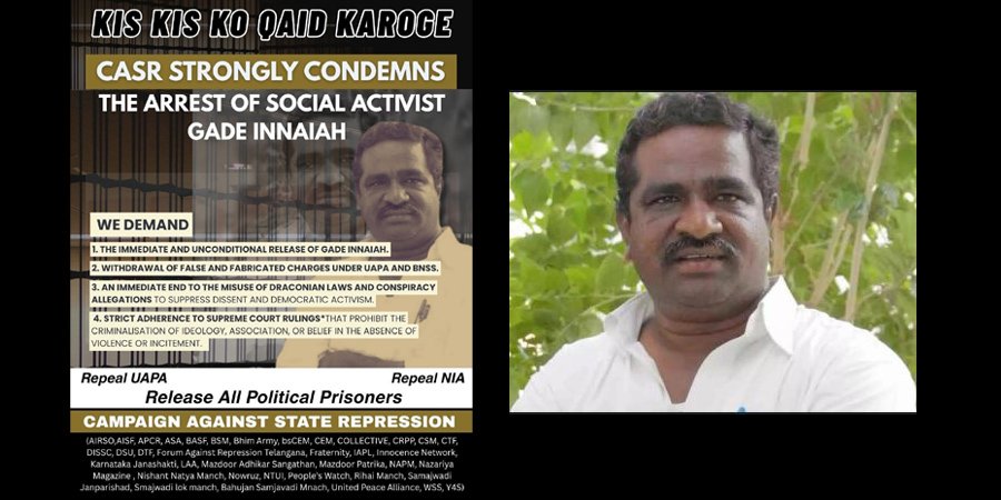 ‘అబద్ధపు, కల్పిత అభియోగాల పై గాదె ఇన్నయ్య అరెస్టు’ Editor Picks ఉద్యమ వార్తలు ఏపి జాతీయం తెలంగాణ anadmin 3 weeks ago 99 0 ‘అబద్ధపు, కల్పిత అభియోగాల పై గాదె ఇన్నయ్య అరెస్టు’